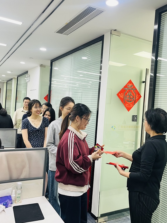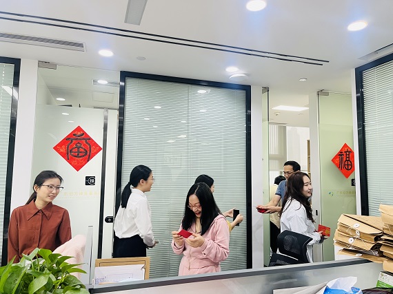 上午9时,律所内洋溢着喜庆祥和的氛围。律所管理层为每一位到岗的同事派发了寓意“开工大吉、好运连连”的开工利是。红包虽小,情意却重,它不仅承载着律所对全体同仁的关怀与祝福,更点燃了大家新一年奋斗的激情。同事们互道“新年好”,分享着春节假期的趣闻,欢声笑语中,大家迅速从“假期模式”切换至“奋斗模式”,展现出强大的团队凝聚力。